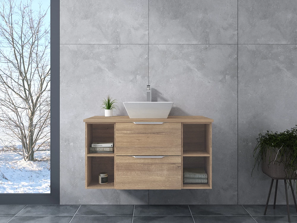 RENNES bútoraink 2 darab tágas, soft close záródású fiókkal, 4 darab oldalsó rekesszel és a hozzá tartozó 12 cm magas kerámia mosdóval rendelkeznek.