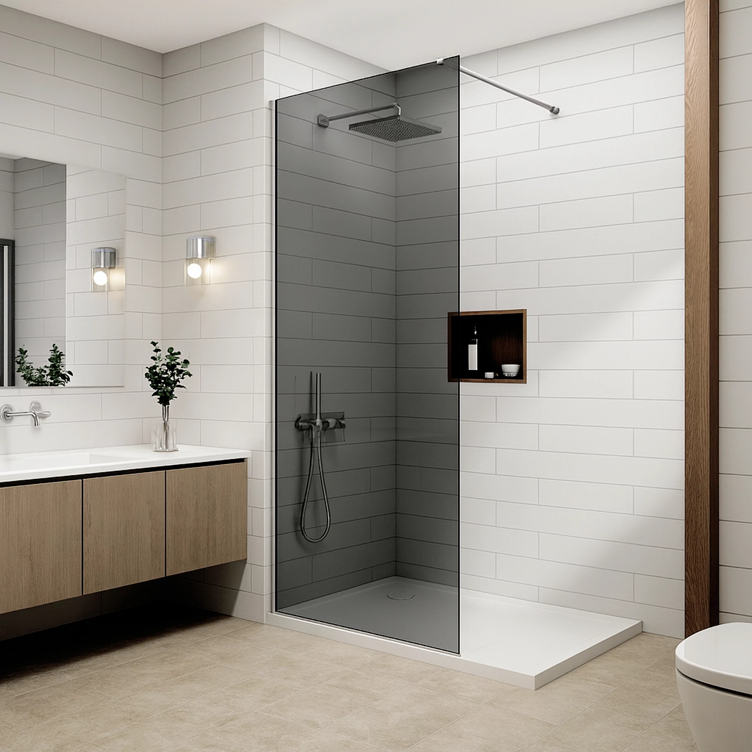 Walk-in Chrome zuhanyfal, füstüveggel 90, 200cm, 8mm, NANO